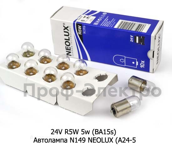 24V R5W 5w (BA15s) Автолампа N149 NEOLUX (А24-5) Неолюкс, все т/с 24В