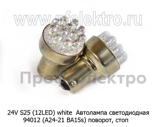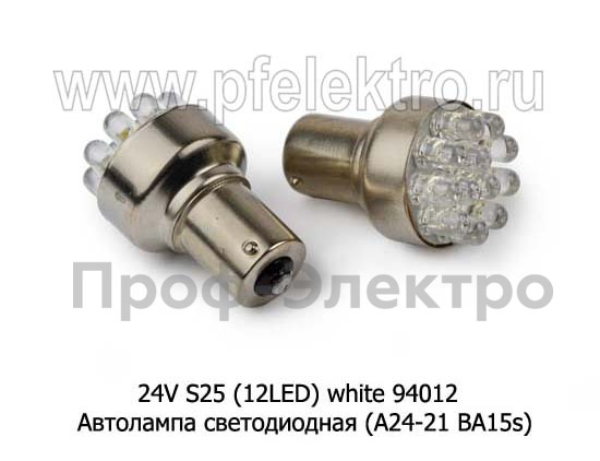24V S25 (12LED) white (94012) Автолампа светодиодная (А24-21 BA15s) поворот, стоп, все т/с 24В (К)