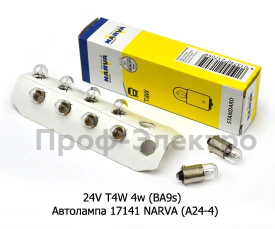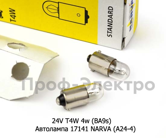 24V Т4W 4w (BA9s) Автолампа 17141 NARVA (А24-4) Нарва Т4, все т/с 24В