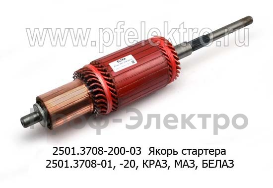 2501.3708-200-03 Якорь стартера (L= 520мм) 2501.3708-01, 20 для краз, маз, белаз (ЭЛТРА)