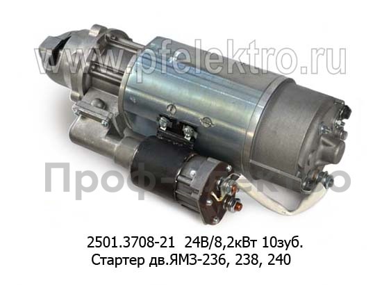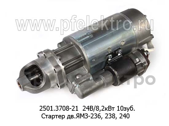 2501.3708-21 24В/8,2кВт 10зуб. Стартер для маз, белаз, краз, моаз, урал с дв.ЯМЗ-236, 238, 240 (ЭЛТРА)