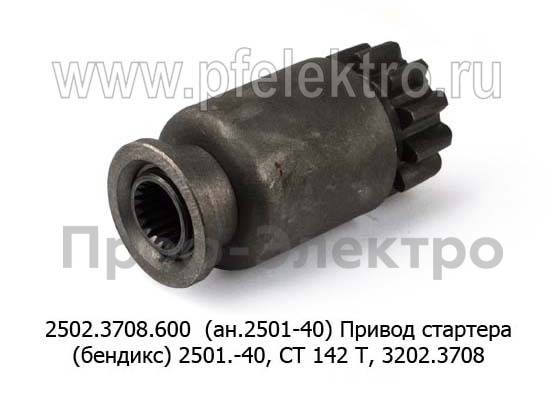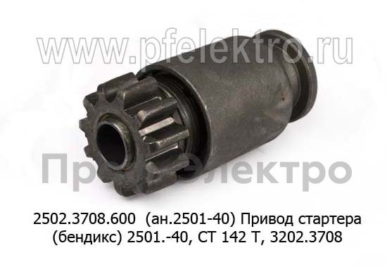2502.3708.600 (ан.2501 - 40 11зуб) Привод стартера (бендикс) 2501. -40, СТ 142 Т, 3202.3708, для камаз, маз, краз (К)