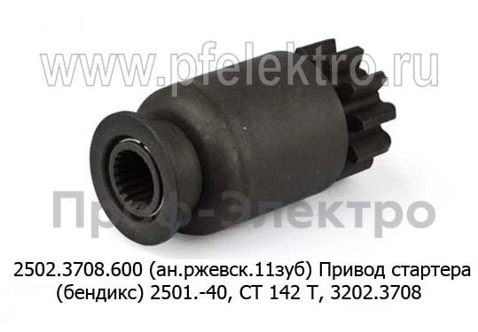 2502.3708.600 (ан.ржевск.11зуб) Привод стартера (бендикс) 2501.-40, СТ 142 Т, 3202.3708, для камаз, маз, краз (БАТЭ)