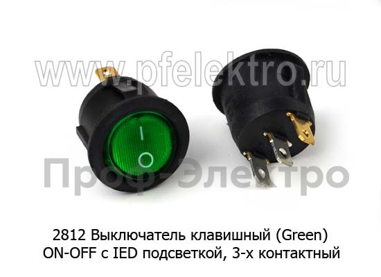 2812 Выключатель клавишный (Green) Выключатель клавишный ON-OFF c LED подсветкой, 3-х контактный