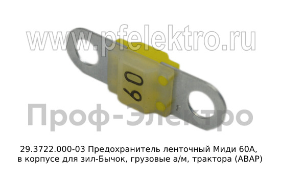 29.3722.000-03 Предохранитель ленточный "Миди" 60А, в корпусе для зил-Бычок, грузовые а/м, трактора (АВАР)