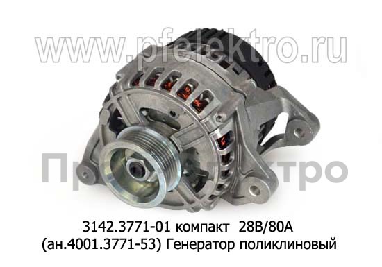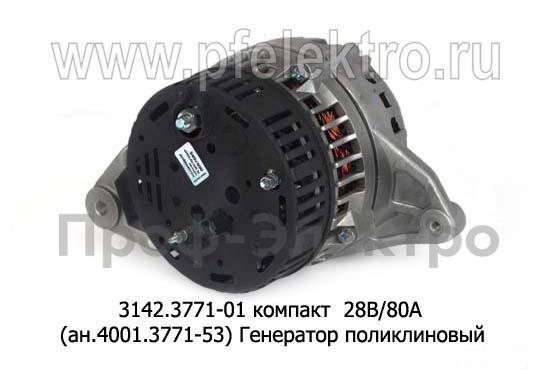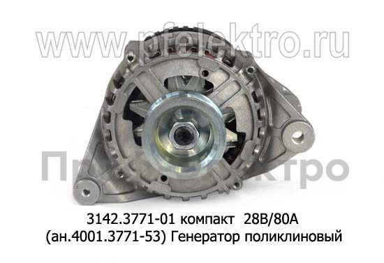 3142.3771-01 Р компакт 28В/80А (ан.4001.3771-53) Генератор поликлиновый для камаз дв.740.30, 740.31, 740.50 (Евро-2,-3) (ПРАМО-АТЭ)