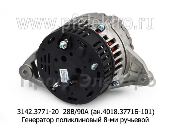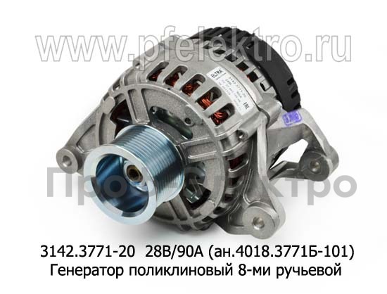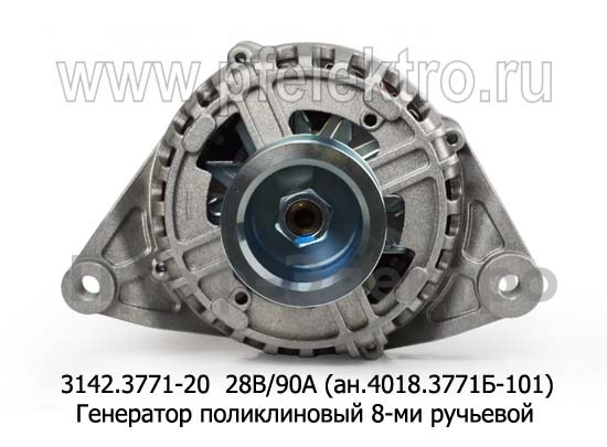 3142.3771-20 28В/90А (ан.4018.3771Б-101) Генератор поликлиновый 8-ми ручейный для камаз дв.740.30, 740.31, 740.50 (Евро-2,-3) (ЭЛТРА)