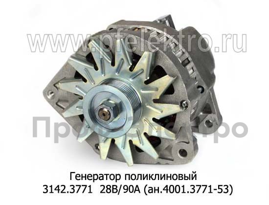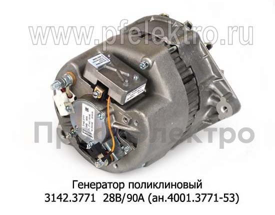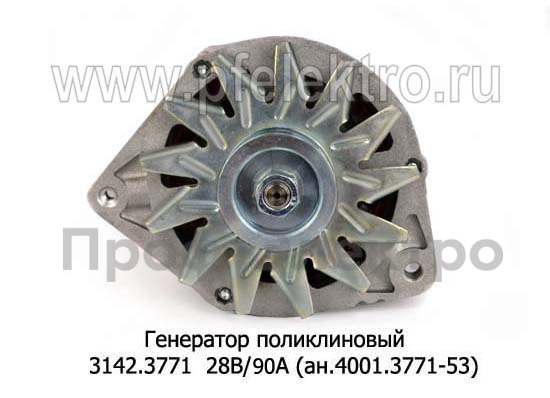 3142.3771 28В/90А (ан.4001.3771-53) Генератор поликлиновый для камаз дв.740.30, 740.31, 740.50 (Евро-2,-3) (ЭЛТРА)