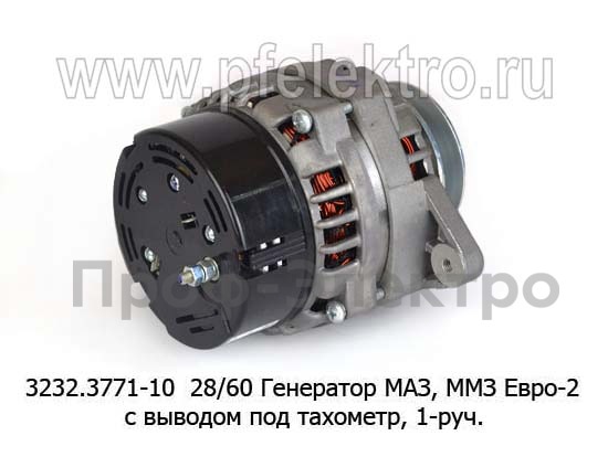 3232.3771-10 28В/60А Генератор маз, ММЗ Евро-2, дв.Д-245, Д-260 и их модиф., с выводом под тахометр, 1-руч (БАТЭ)