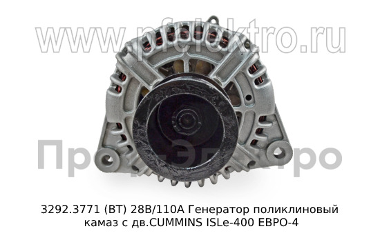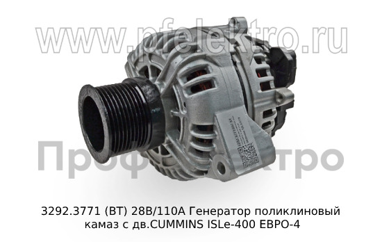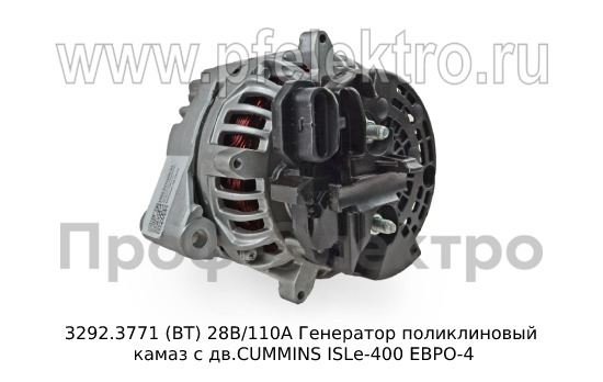 3242.3771-20 (АЕ) 28В/110А (ан.4542.3771-20) Генератор поликлиновый 8-ручейный с 5-пиновым разъемом для камаз с дв.Евро-4, Евро-5 и модиф. (АЕ)