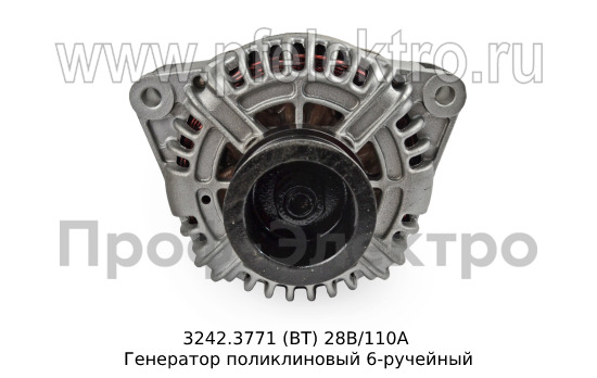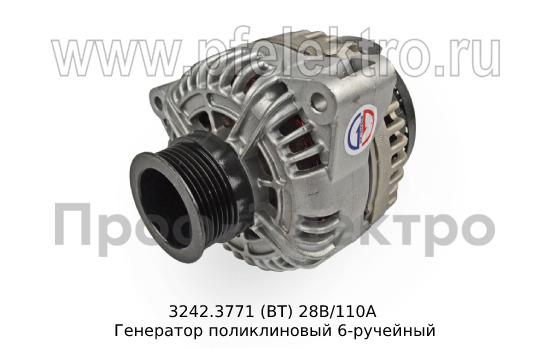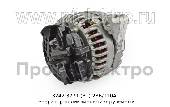 3242.3771 (ВТ) 28В/110А Генератор поликлиновый 6-ручейный для камаз с двигателями Евро-3/4 и модиф. (АЕ)