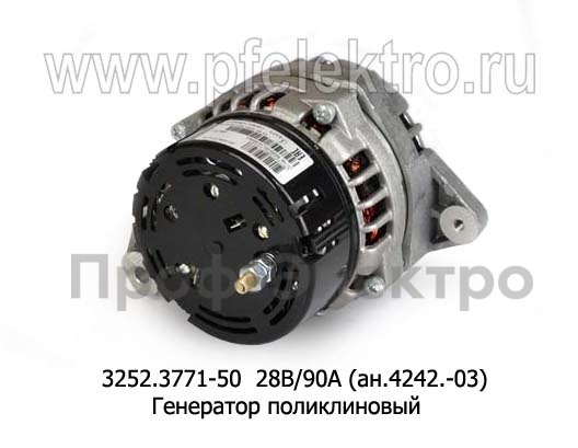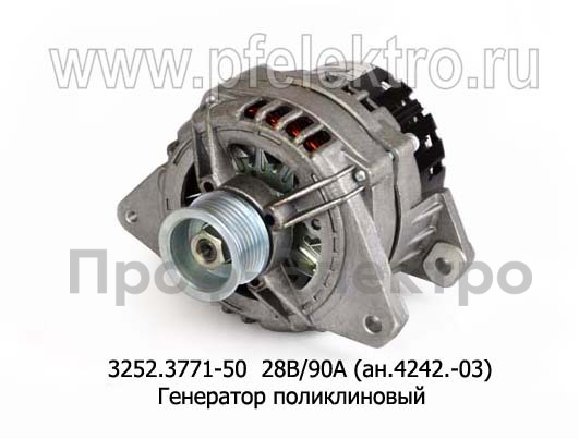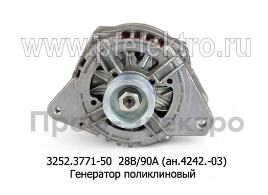 3252.3771-50 28В/90А (ан.4242.-03) Генератор поликлиновый дв.ЯМЗ-236, -238 Евро-3 (БАТЭ)