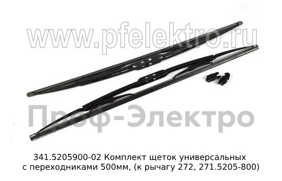 341.5205900-02 Комплект щеток универсальных с переходниками 510мм, (к рычагу 272, 271.5205-800) для камаз, маз, зил-Бычок (графит. рез., к-т 2шт.)