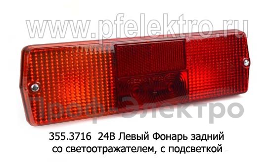 355.3716 (353-03) 24В Левый Фонарь задний со светоотражателем, с подсветкой для камаз, маз, белаз, газ, зил (Европлюс)