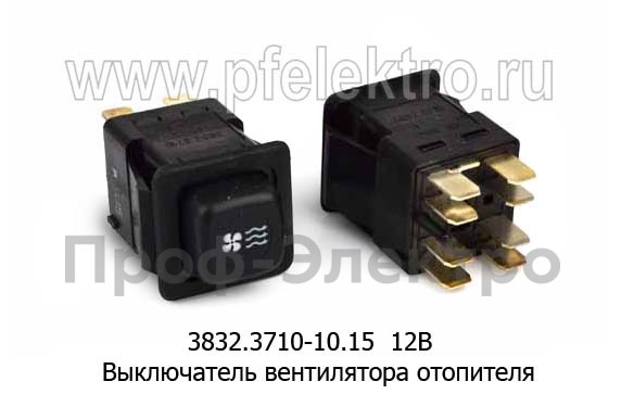 3832.3710-10.15 12В Выключатель вентилятора отопителя для Волга, газ, зил, уаз (2п) (АВАР)