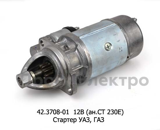 42.3708-01 12В/1,65кВт (ан.СТ 230Е) 9зуб. Стартер для уаз-3151, газ-3303, -3741, Т-170, Волга газ-24, Д-160, -180 (БАТЭ)