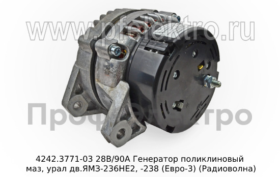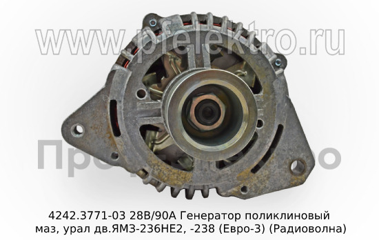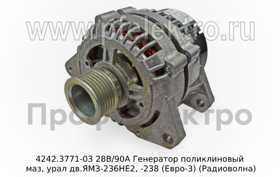 4242.3771-03 28В/90А Генератор поликлиновый маз, урал дв.ЯМЗ-236НЕ2, -238 (Евро-3) (Радиоволна)