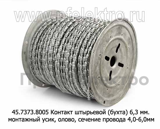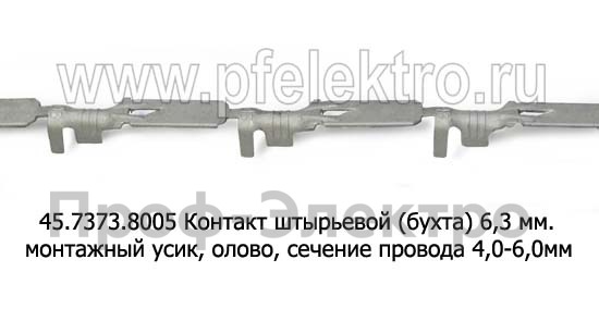 45.7373.8005 (1/02506-04/44, 103613-11) Контакт штыревой (10/3000шт./бухта) 6,3 мм., монтажный усик, олово (сечение провода 4,0-6,0 мм) (Копир)