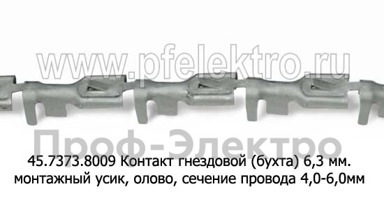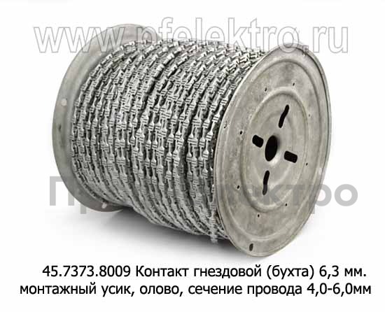 45.7373.8009 (ан. КТ 045-4КЛ) Контакт гнездовой (4000шт./бухта) 6,3 мм, монтаж. усик, олово (сечение провода 4,0-6,0 мм) (Техком)