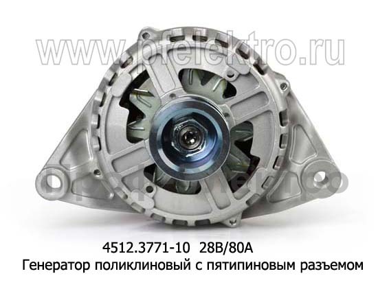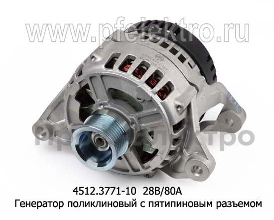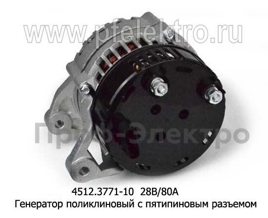 4512.3771-10 28В/80А Генератор поликлиновый урал дв.ЯМЗ 236НЕ2; 6565, с пятипиновым разъемом (ПРАМО-АТЭ)