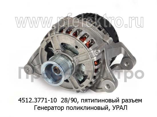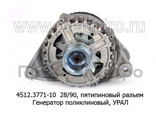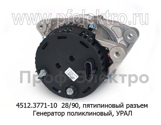 4512.3771-10 28В/90А Генератор поликлиновый урал дв.ЯМЗ 236НЕ2; 6565, с пятипиновым разъемом (ЭЛТРА)