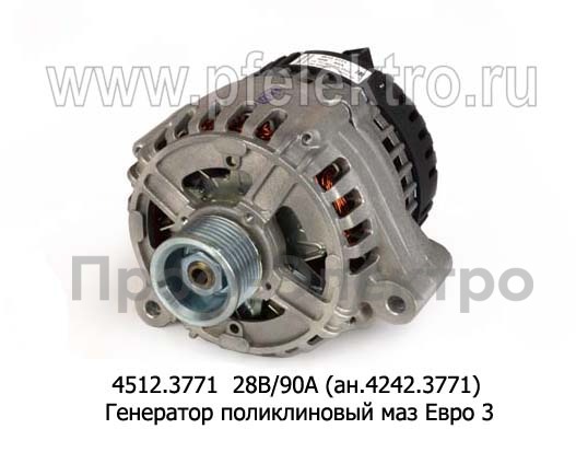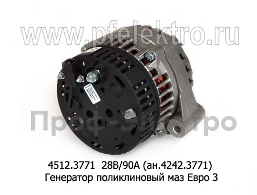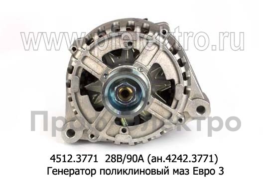 4512.3771 28В/90А (ан.4242.3771) Генератор поликлиновый маз дв.ЯМЗ-236, 238 (Евро-3) (ЭЛТРА)