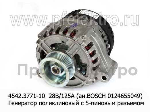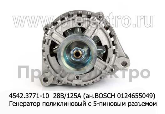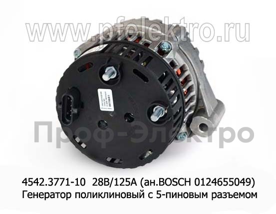 4542.3771-10 28В/125А (ан.BOSCH 0124655049) Генератор поликлиновый, 6-ручьевой с пятипиновым разъемом для камаз (Евро-3,-4) (ЭЛТРА)