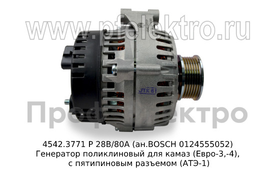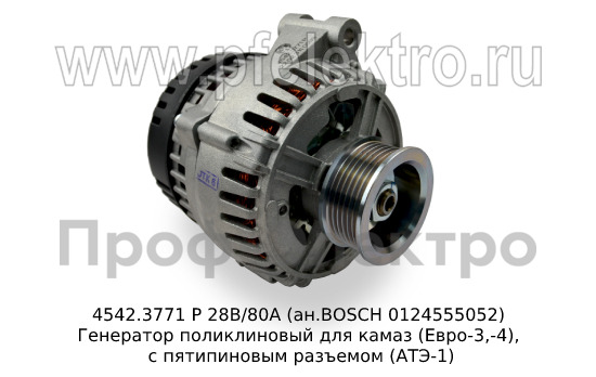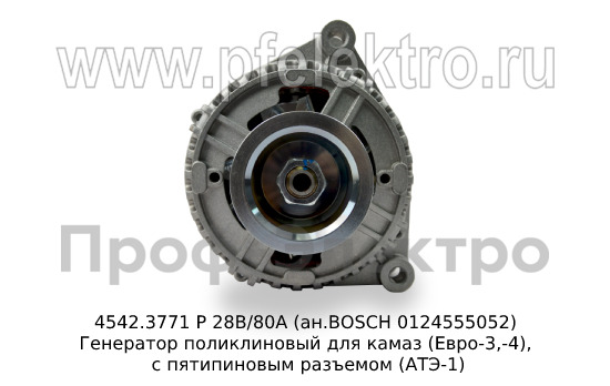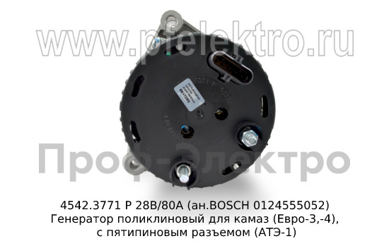 4542.3771 Р 28В/80А (ан.BOSCH 0124555052) Генератор поликлиновый для камаз (Евро-3,-4), с пятипиновым разъемом (ПРАМО-АТЭ)