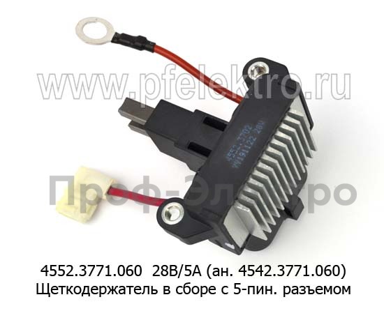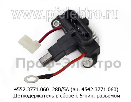 4552.3702 28В/5А (ан. 4542.3771.060) Щеткодержатель в сборе на 4512.3771-10, 4542.3771-10 с пятипин. разъемом для камаз Евро 3 (Прамо-Электро)