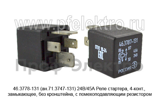 46.3778-131 (ан.71.3747-131) 24В/45А Реле стартера, 4-конт., замыкающее, без кронштейна, с помехоподавляющим резистором, для урал-Next (ЭМИ)