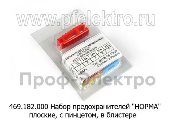 469.182.000 Набор предохранителей "НОРМА" штырьевые, с пинцетом, в блистере (5А, 10-2шт, 15-2шт, 20-2шт, 25А) все т/с (АВАР)