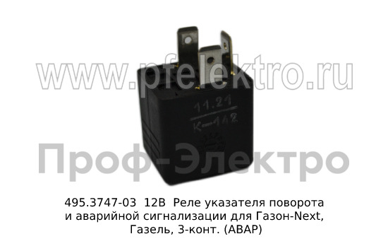 495.3747-03 12В (ан. 641.3777) Реле указателя поворота и аварийной сигнализации для Газон-Next, Газель, 3-конт. (АВАР)