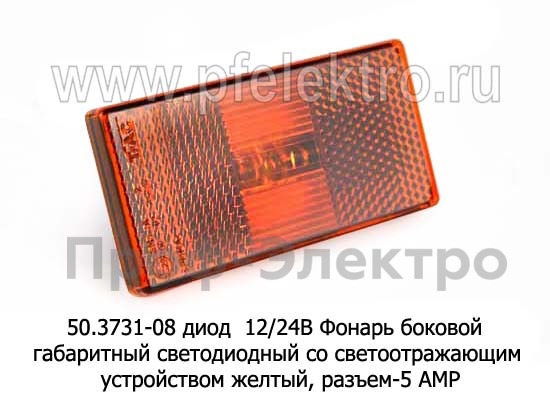 50.3731-08 LED 12/24В (ан. 016.3731) (жел) разъем-5 АМР Фонарь боковой габаритный светодиодный со светоотражающим устройством, все т/с (Европлюс)