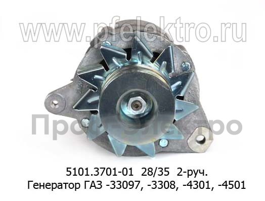 5101.3701-01 28В/35А Генератор дв.Д-245.7, ГАЗ -33097, -3308, -4301, -4501, 2-руч. (ЗиТ)
