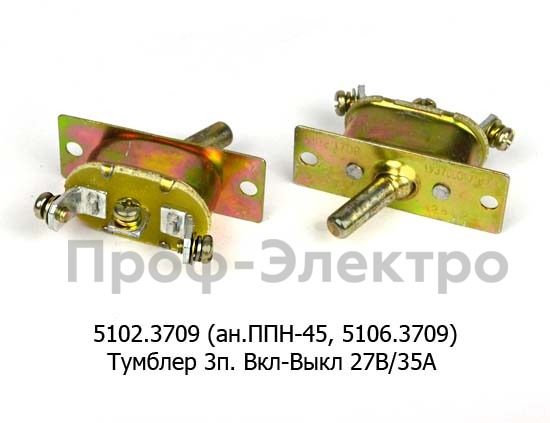 5102.3709 (ан.ППН-45, 5106.3709) Тумблер 3п. Вкл-Выкл-Вкл 27В/35А (К)