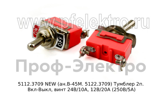 5112.3709 NEW (ан.512.3709, В-45М) Тумблер 2п. Вкл-Выкл, винт 24В/10А, 12В/20А (250В/5А) все т/с (К)