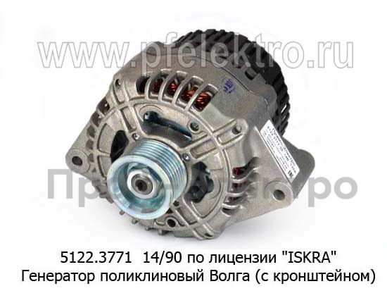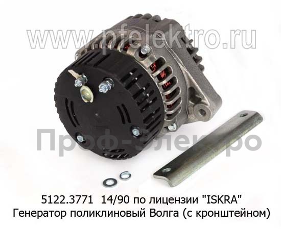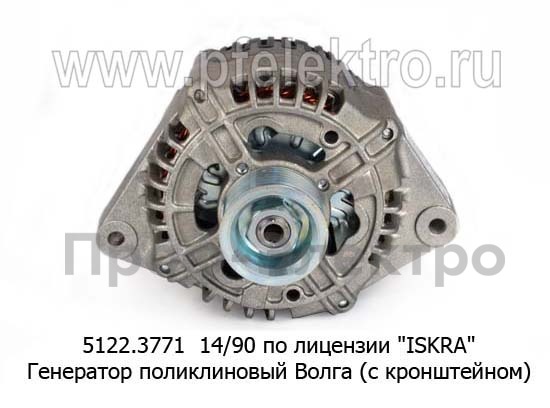 5122.3771 14/90 Генератор поликлиновый для Волга ЗМЗ-406.10, -409.10, -405.22 и мод. (с кроншт), по лиц."ISKRA (ЭЛТРА)