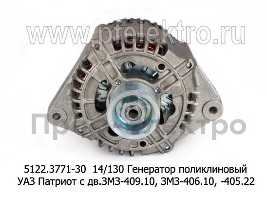 5122.3771-30 14/130 Генератор поликлиновый уаз Патриот с дв.ЗМЗ-409.10 с кондиц., дв.ЗМЗ-406.10, -405.22 и их мод. (ЭЛТРА)