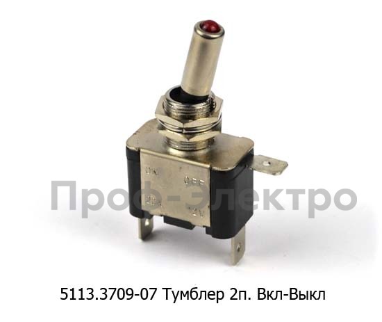 513.3709-07 (ан.5113.3709-07) Тумблер 2п. Вкл-Выкл, штырь 6,3, с диодной подсветкой 12В/20А, все т/с (К)