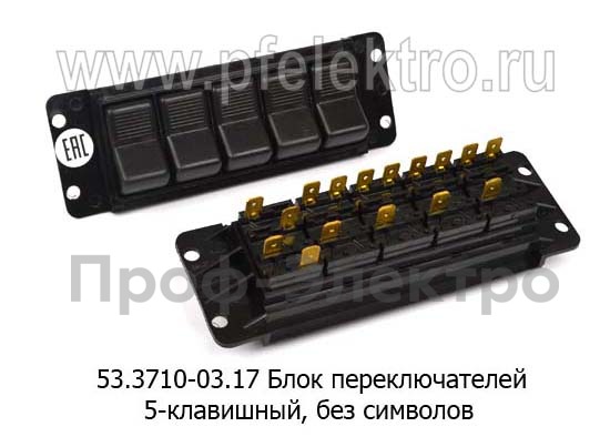 53.3710-03.17 12/24В Блок переключателей 5-ти клавишный, без символов, для лаз, паз, лиаз (АА)