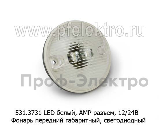 531.3731 LED белый (круглый) АМР разъем, 12/24В Фонарь передний габаритный, светодиодный лиаз, паз (АЭК-НТ)