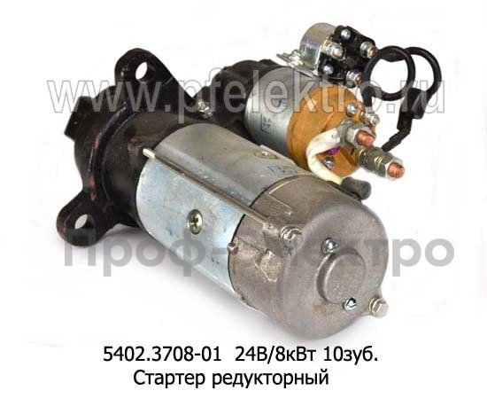 5402.3708-01 24В/8кВт (ан.СТ 142.3708-10, AZF 4554, 8902) 10зуб. Стартер редукторный камаз, Евро-2,-3, урал, дв.камаз 740.30, -50 и мод. (БАТЭ)