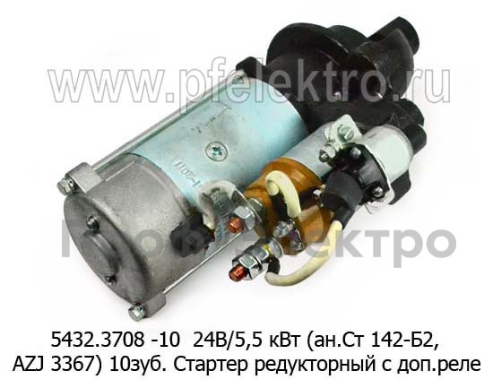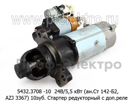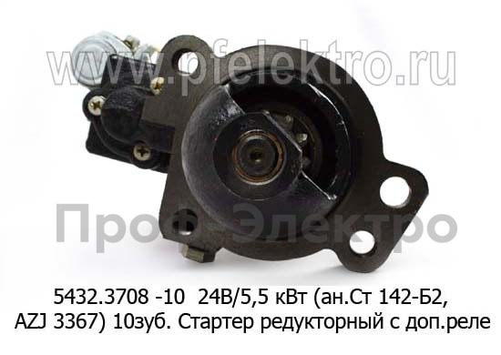 5432.3708-10 24В/9 кВт (ан.Ст 142 Б2, AZJ 3367) 10зуб. Стартер редукторный с доп.реле для камаз, урал с дв.740.3, 740.11-240, 740.13 модиф.(БАТЭ)