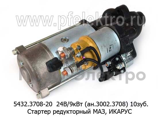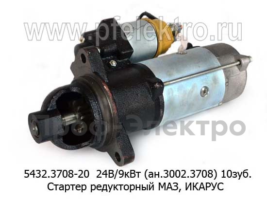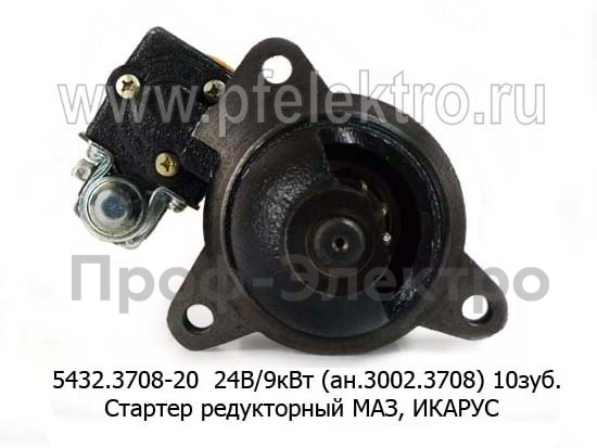 5432.3708-20 24В/9 кВт (ан.3002.3708) 10зуб. Стартер редукторный для маз, икарус, дв.ММЗ, Д260.5, Д260.7, Д265 и мод. (модуль 3,75) (БАТЭ)
