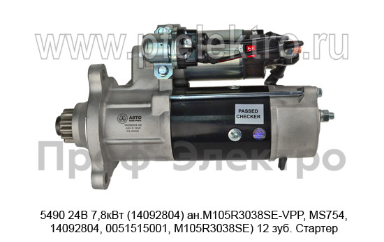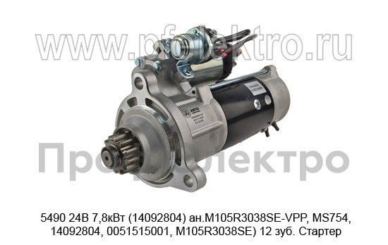 5490 24В 7,8кВт (14092804) ан.M105R3038SE-VPP, MS754, 14092804, 0051515001, M105R3038SE) 12 зуб. Стартер камаз-5490/МВ, MERCEDES с дв. OM457LA (АЕ)