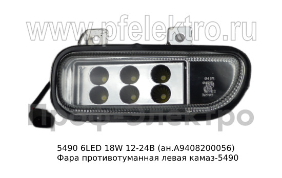 5490 6LED 18W 12/24В (ан.А9408200056) Фара противотуманная левая камаз-5490 (К)