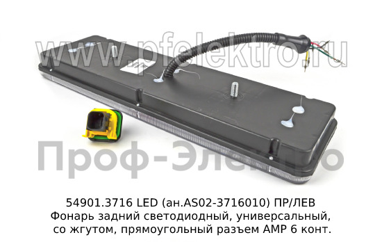 54901.3716 LED (ан.AS02-3716010) ПР/ЛЕВ Фонарь задний светодиодный, универсальный, со жгутом, прямоугольный разъем AMP 6 конт. для камаз 54901 (К)