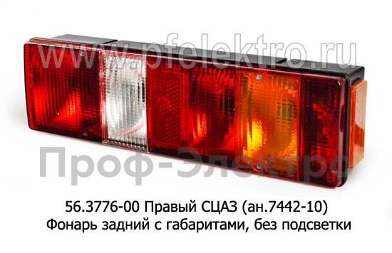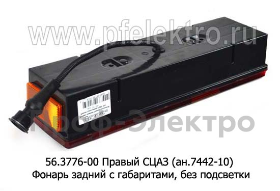 56.3776-00 б/л Правый, СЦАЗ (ан.7442-10) Фонарь задний с габаритами, без подсветки, разъём СЦАЗ, камаз, маз, урал, зил (ТАС)