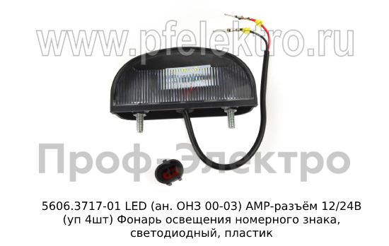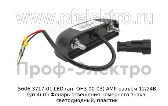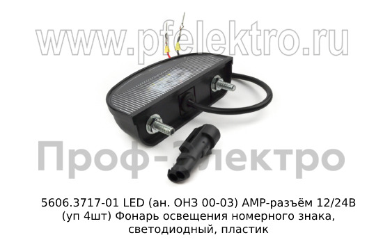 5606.3717-01 LED (ан. ОНЗ 00-03) АМР-разъём 12/24В (уп 4шт) Фонарь освещения номерного знака, светодиодный, пластик, камаз, уаз. зил, Газель (СКВ)