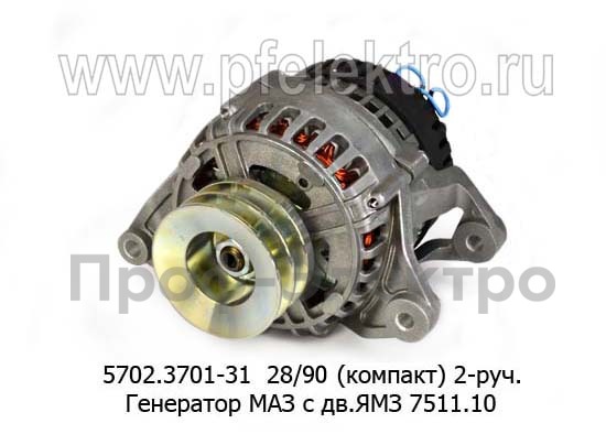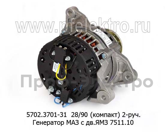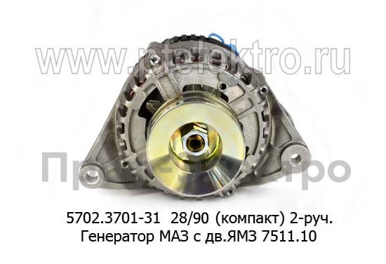 5702.3701-31 28В/90А (компакт) Генератор маз дв.ЯМЗ 7511.10, 2-руч. (ЭЛТРА)